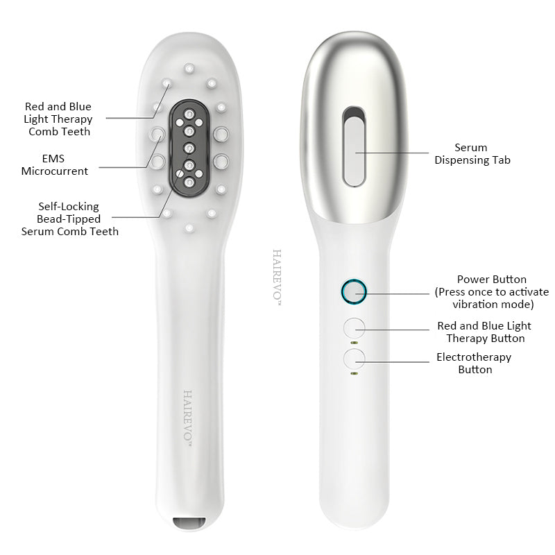 HairEvo™ Rechargeable Scalp Care Hair Growth Comb with Red & Blue Light Microcurrent Therapy