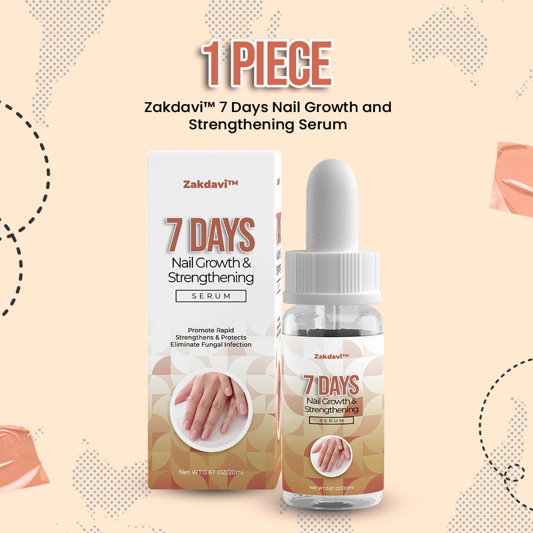 Discover the secret to healthier, longer nails in just 7 days with Zakdavi™️ Nail Growth and Strengthening Serum. Our powerful formula stimulates natural growth, increases blood flow, and nourishes with enriching ingredients. Watch your nails grow, strengthen, and brighten in just one week, boosting your confidence and beauty. Unleash the magic of Zakdavi™️ for beautiful, well-nourished nails – don't wait any longer!