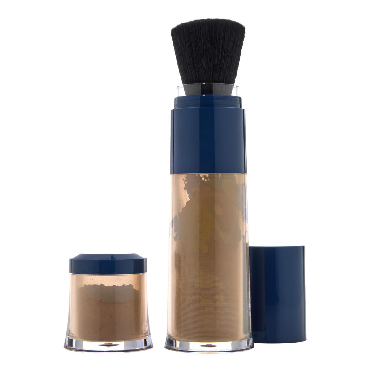 - Use the brush to blend the powder in your hair by rotating in a circular motion. Continue to dab and rotate until the desired amount of coverage is achieved.