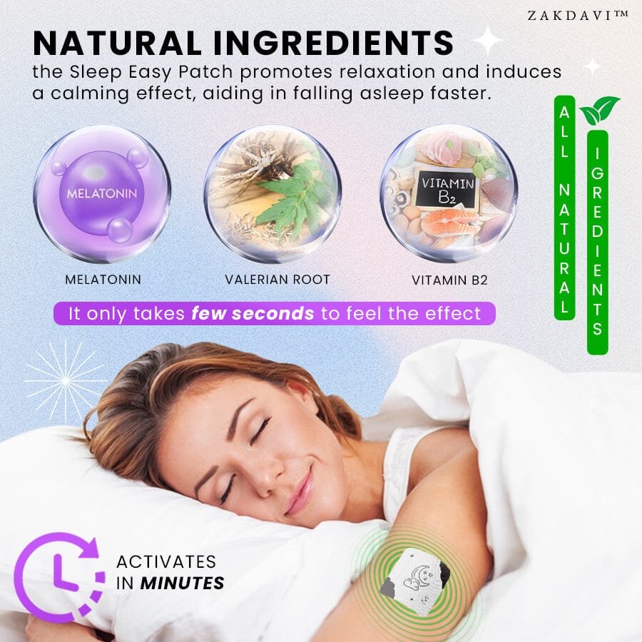 Natural Ingredients: Zakdavi Sleep Easy Patch utilizes natural components like Melatonin, Hops, and Valerian Root, offering a safe and holistic approach to improving sleep.